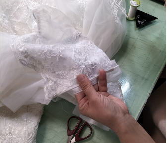 ドレスを見ながらインスピレーションに基づき製作を進めて参ります。自由な作品作りができる分、わたくし達も存分に楽しませていただきます。