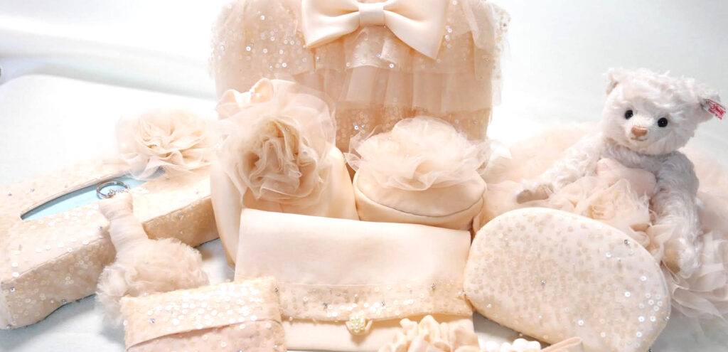 クローゼットに眠らせておくのはもったいない、美しいレースやサテン。毎日持ち歩けるバッグやポーチに形を変えて、あの日の幸せな記憶をいつもあなたの手元に。(バッグ・ポーチについて詳しくはこちら)