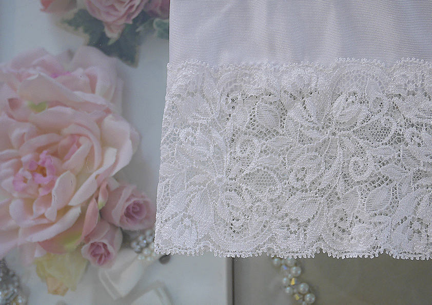 高めのウエストラインはストレッチレースでドレスに響かずすっきり。