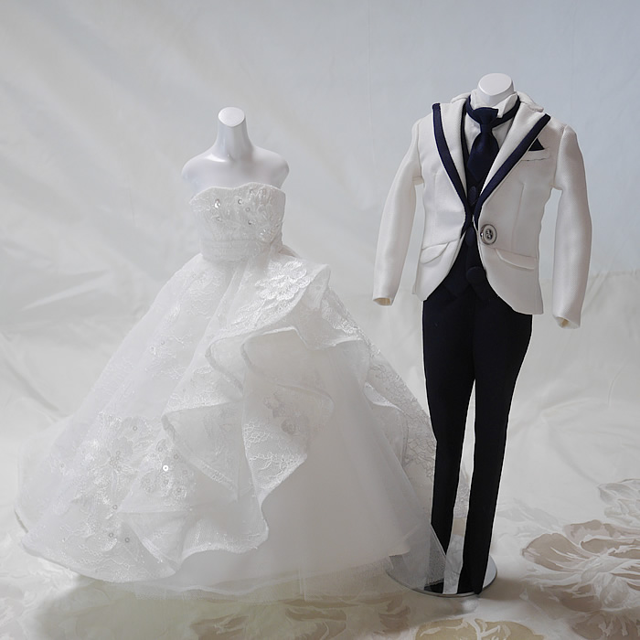 ドレスはアシメトリーの大きなフリルが印象的なデザインです。