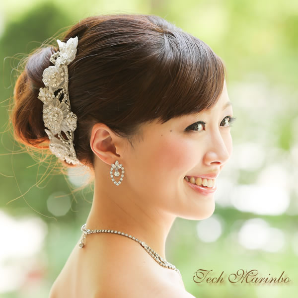 最近はティアラの次に人気が有るのがボンネです。クラシカルなイメージの会場やドレスにピッタリ合いますし、使い方で色々な表情を見せてくれるのも魅力です。