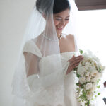 ゴージャスながらも程よい大きさのボンネはベールとのコーディネートもおすすめです。