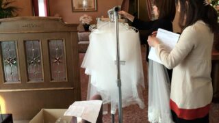 最近はティアラの次に人気が有るのがボンネです。クラシカルなイメージの会場やドレスにピッタリ合いますし、使い方で色々な表情を見せてくれるのも魅力です。