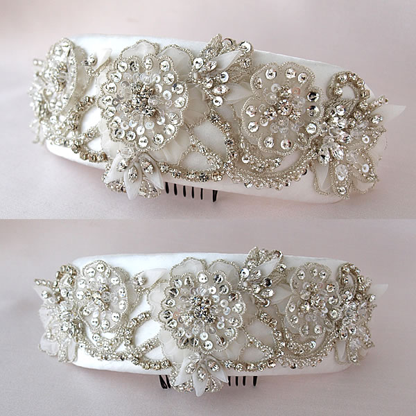 オーガンジーのお花にダイヤストーンやスパンコールをふんだんにあしらいました。