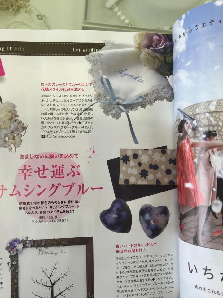 ブライダルの雑誌『レイウエディング』さん6月号のサムシングブルー特集で当店の【花嫁ハンカチ】をご紹介頂きました!