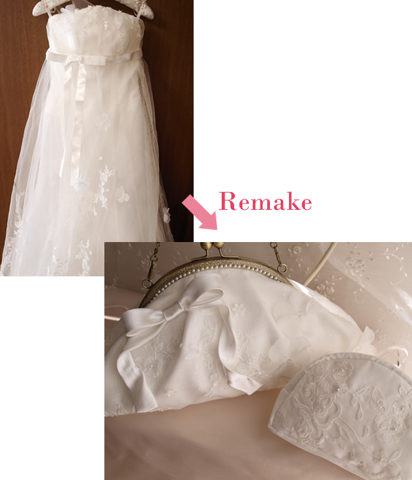 ウェディングドレスをセレモニー用のバッグにリメイク。