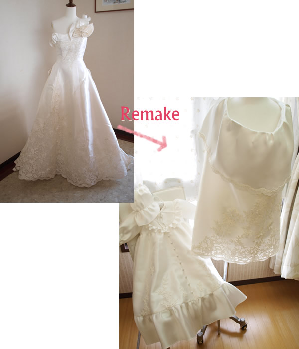 ウェディングドレスをベビードレスとお宮参りのケープにリメイク。