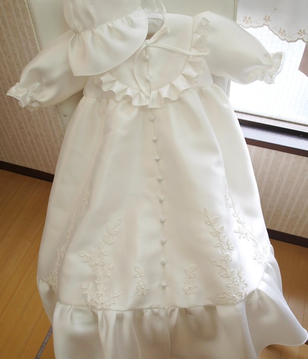 ベビードレスは胸元にフリルをあしらった愛らしいデザイン。