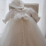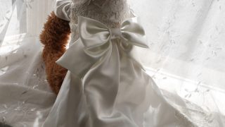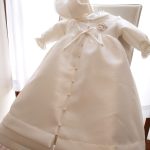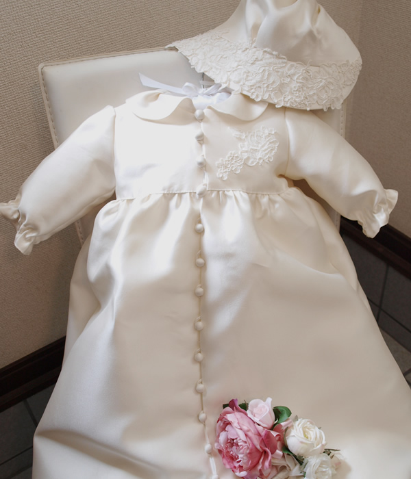 ミカドサテンのウェディングドレスをべビ-ドレスにリメイクしました。