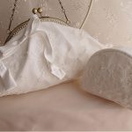 スカートに重なったふんわりオーガンジーのレースや胸元、シューズのレースもウェディングドレスのレースをひとつひとつ取り外して縫い付けた細部にこだわってリメイクしたベビードレスです。