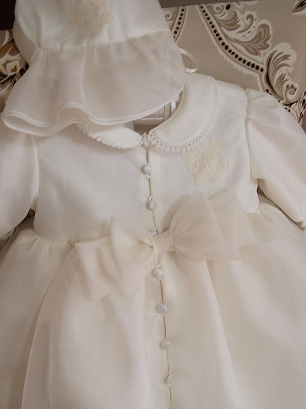 優しいアイボリーのドレスが赤ちゃんを包んでくれます。
