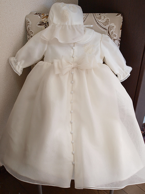 優しいアイボリーのドレスが赤ちゃんを包んでくれます。