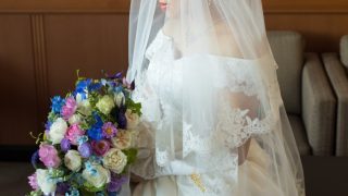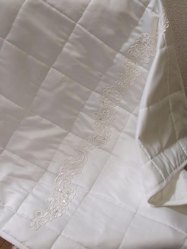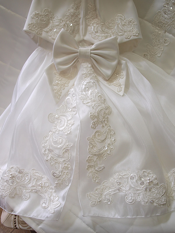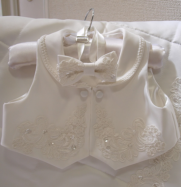 ウェディングドレスをベビー用のベストとオーバースカートにリメイクしました。