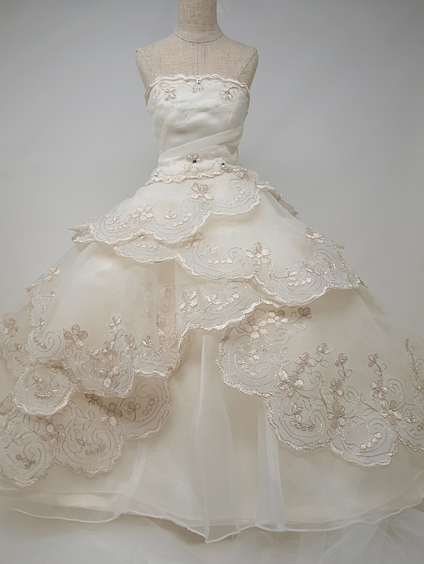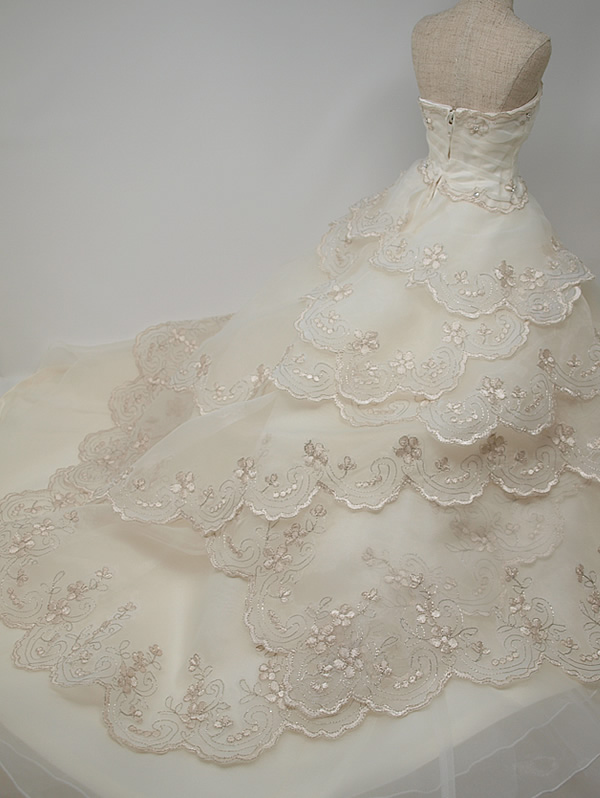 幾重にも重ねたオーガンジーの端にレースを施した姿は圧巻です。