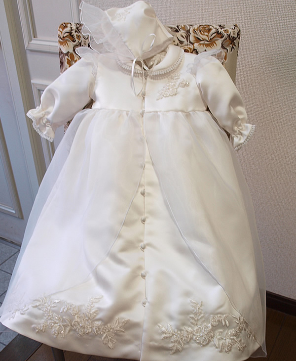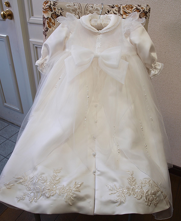 2枚重ねると幸せ一杯の華やかなベビードレスに。
