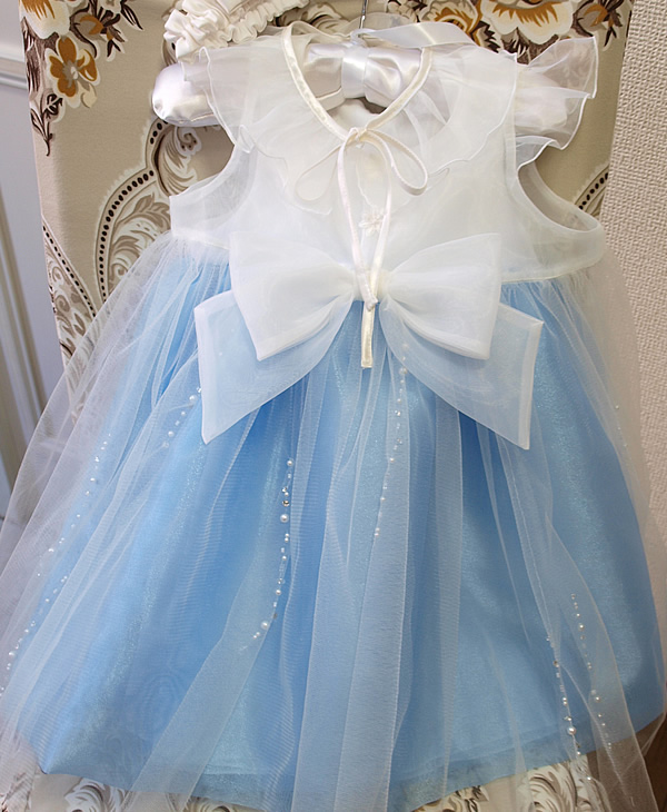 1歳のお誕生日の頃にはオーバードレスの下にブルーのパニエをはいて