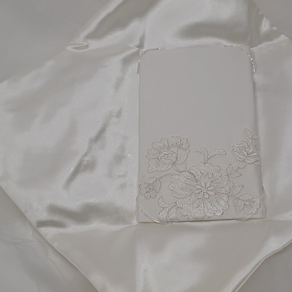 バッグ・ポーチウェディングドレスを袱紗にリメイクしました。