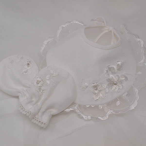 ベビー・子供・出産準備品ウェディングドレスをベビーグッズにリメイクしました。