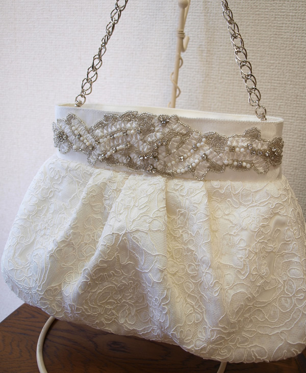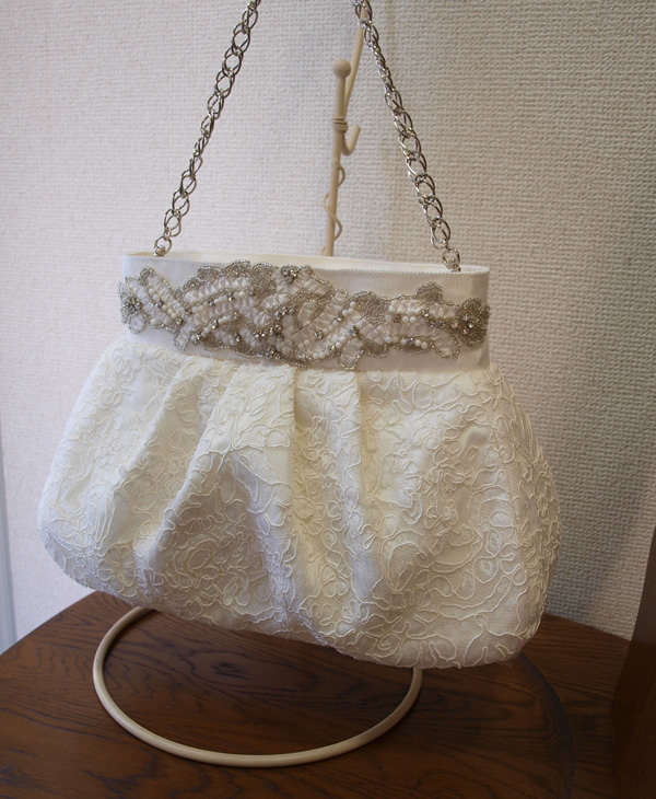 ウェディングドレスをパーティなどで活躍できるフォーマルバッグにリメイクしました。