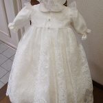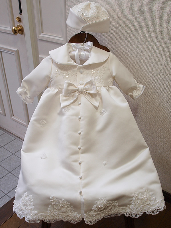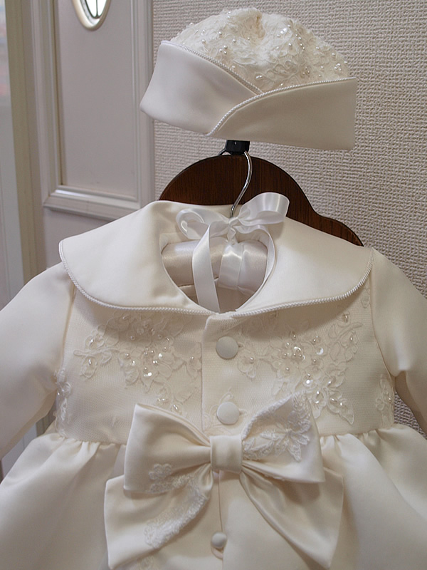 おくるみはウェディングドレスのビジューレースを利用したエレガントなタイプ。