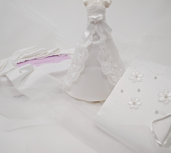 ドレスのサテンやレースを余す事なくほぼリメイクに使いました。