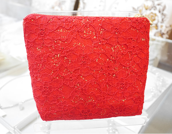 赤いカラードレスをシンプルなコスメポーチにリメイクしました。