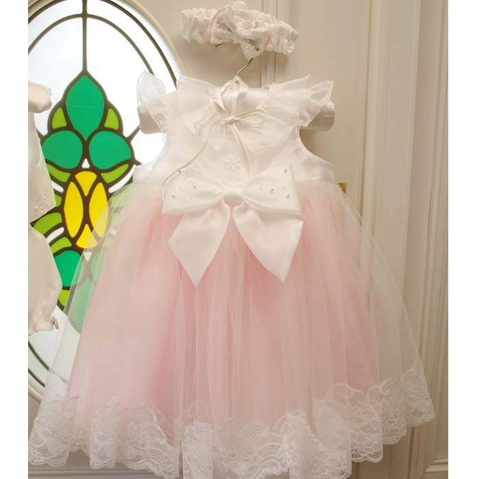 ピンクの蝶ネクタイやくるみ釦、ヘッドリボンはパパのチーフからお作りしています。