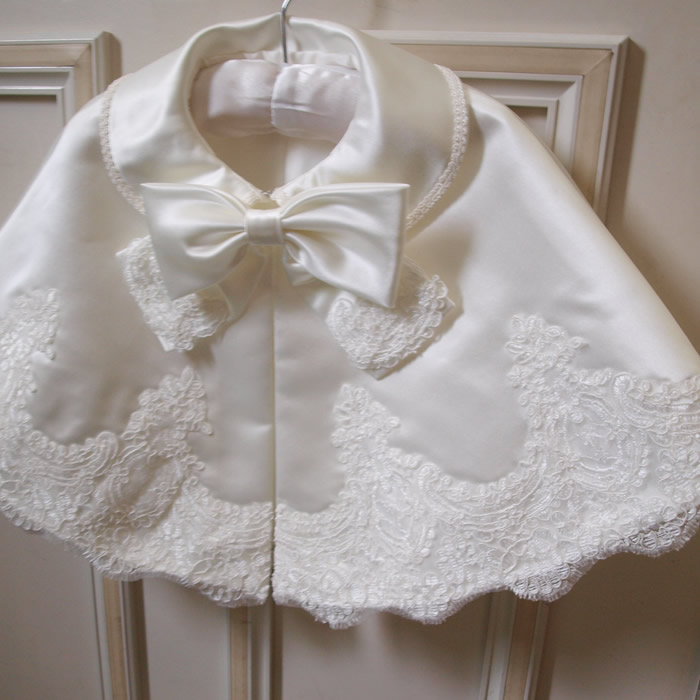ベビー・子供・出産準備品ウェディングドレスをベビー用のポンチョにリメイクしました。