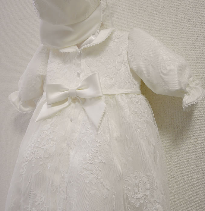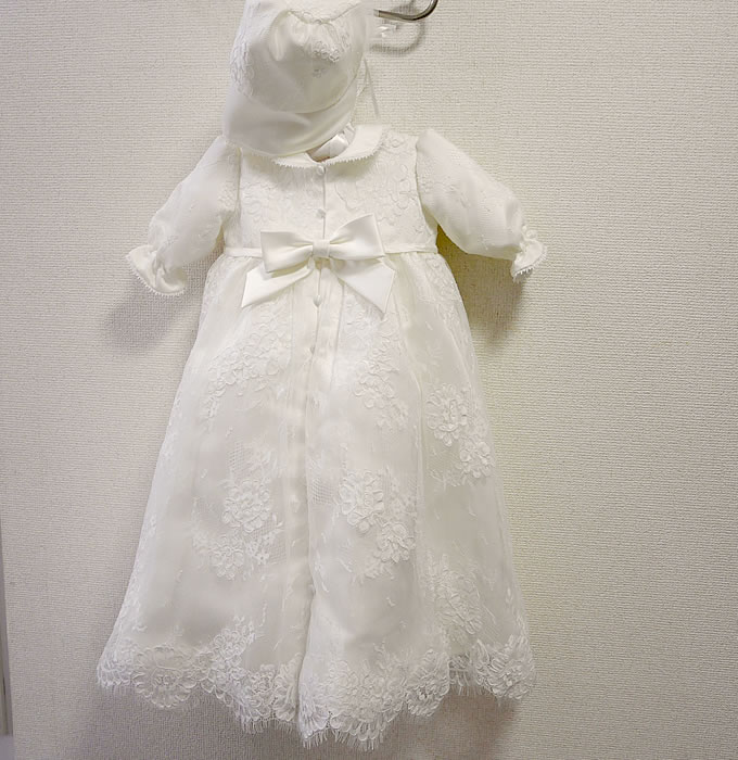 ウェディングドレスからベビーのセレモニードレスにリメイクしました。