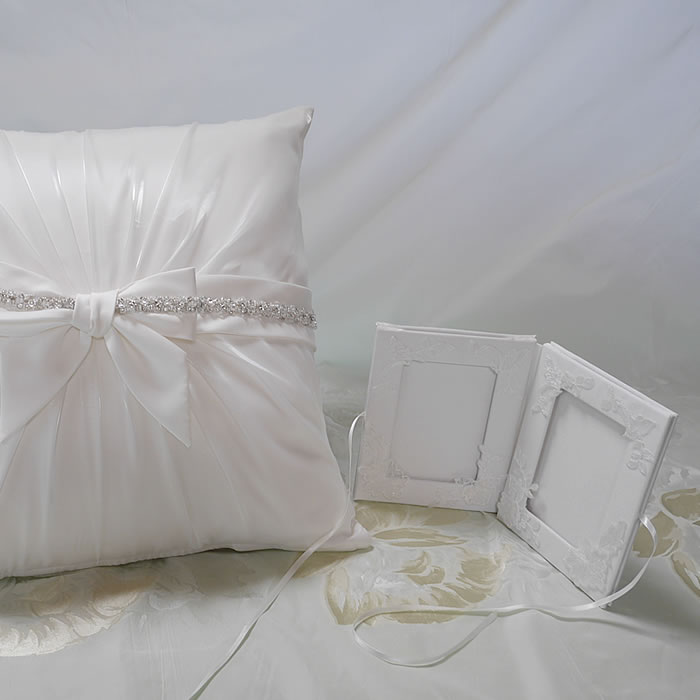 ウェディングドレスからクッションカバーとフォトスタンドにリメイクしました。