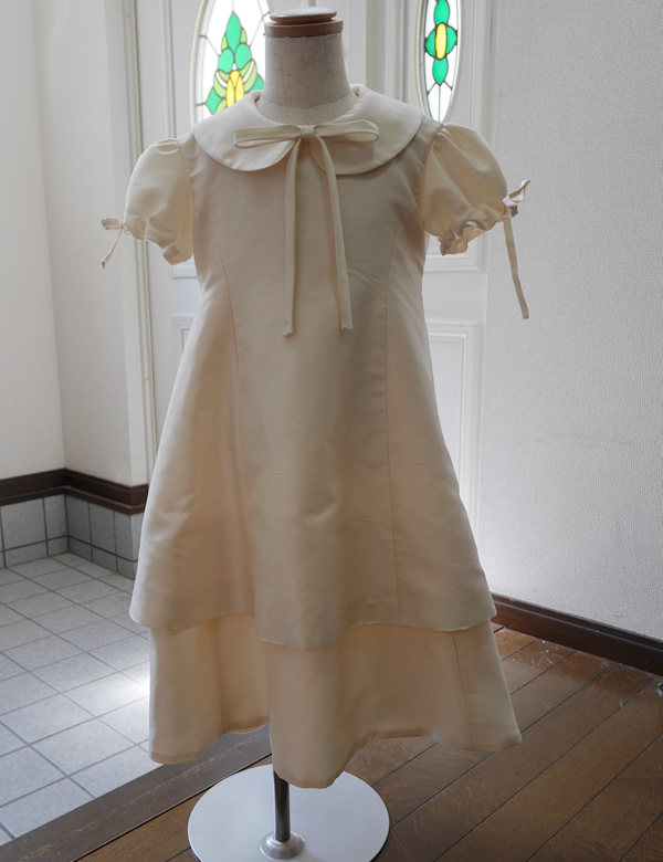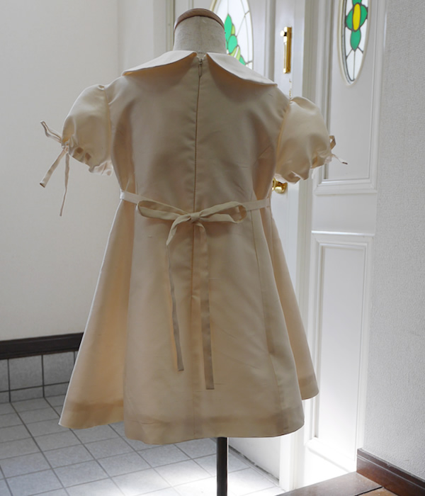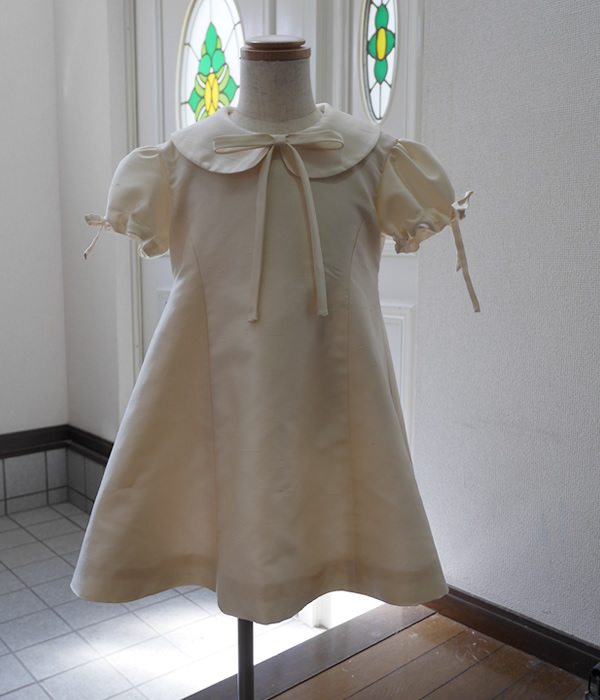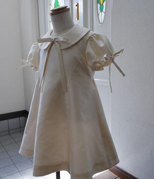 シルク地のウェディングドレスからお子様のドレスにリメイクしました。