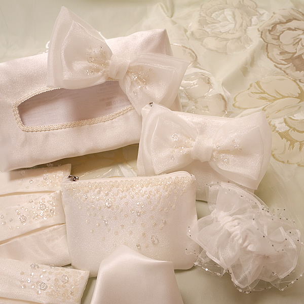 ウェディングドレスのサテン地やオーガンジーを使い、