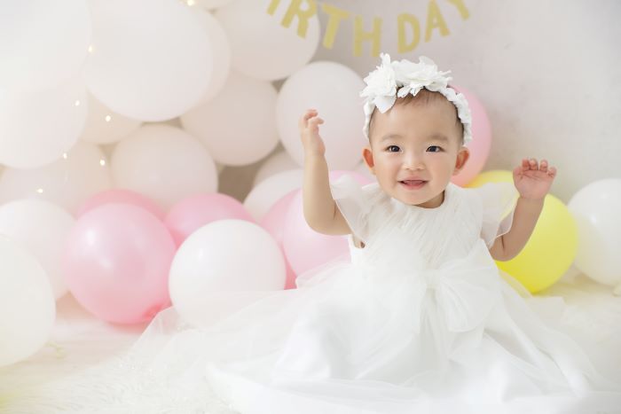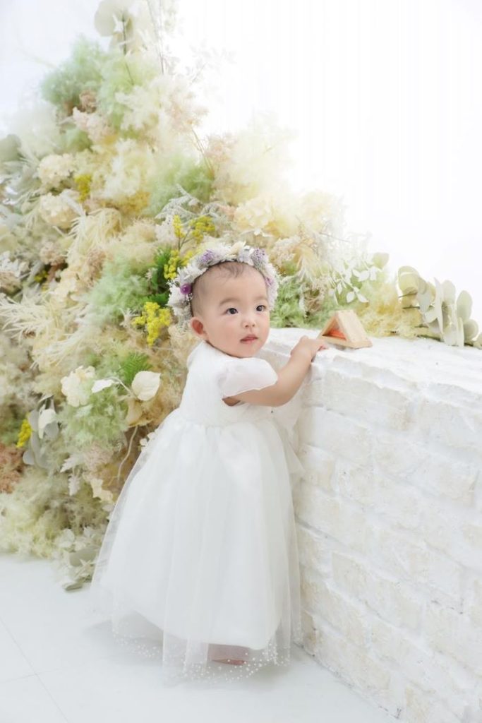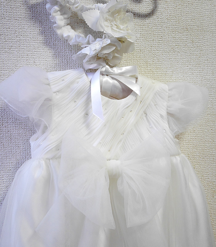 ウェディングドレスをファーストバースデードレスにリメイクしました。