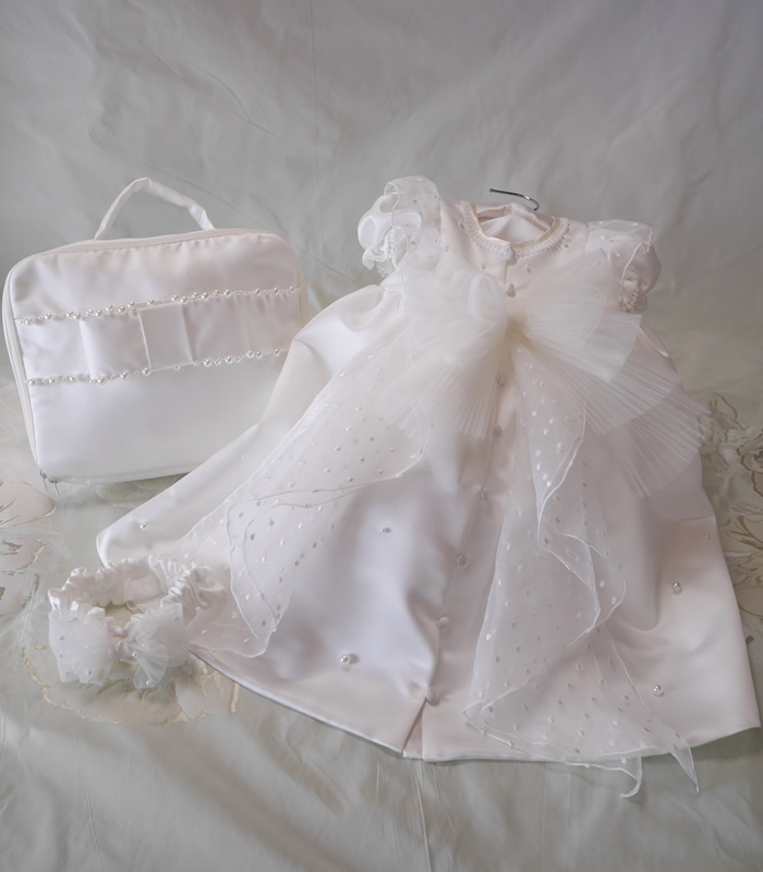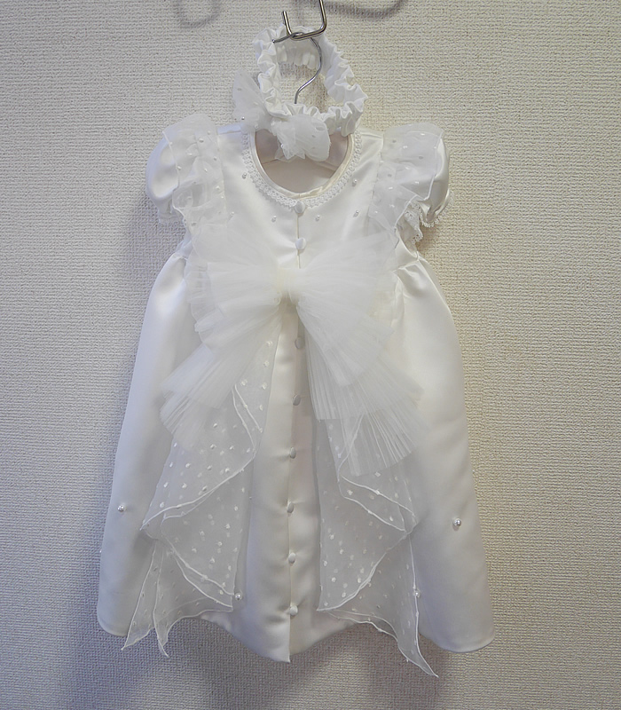 ウェディングドレスからファーストバースデードレスとヘッドリボン、