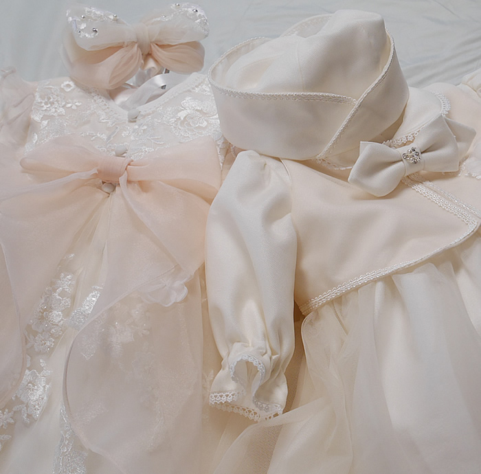 どちらも可愛いセレモニーにふさわしいベビードレスに仕上がりました。