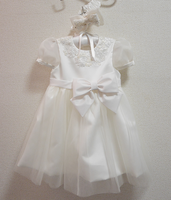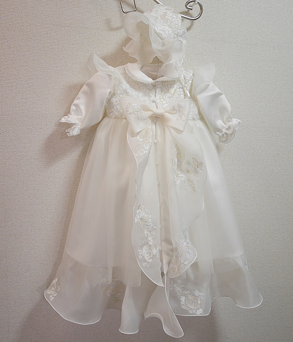 ベビードレスはオーガンジーのフリル仕立てでふんわりと優しいデザイン。