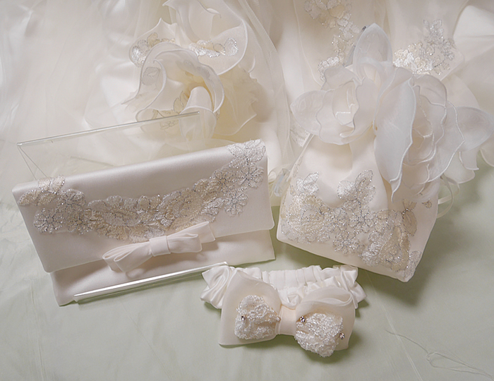 その他、袱紗やポーチもレースをあしらいエレガントに仕上がりました。