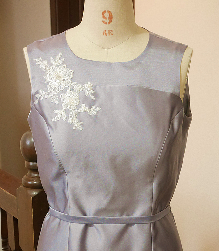 レースはあえて染色せず白のままポイントとして胸元にあしらいました。