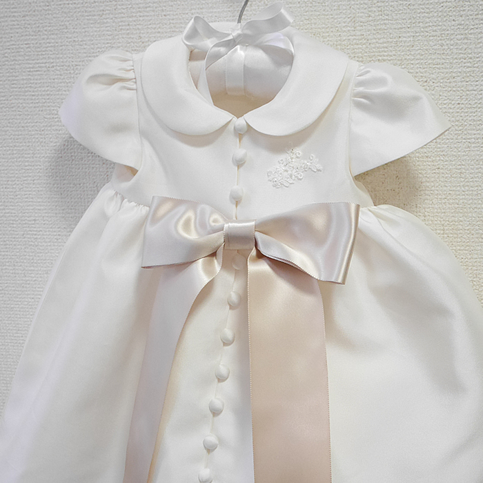 上品なサテンのドレスでしたので、シンプルなデザインがとても可愛いですね。