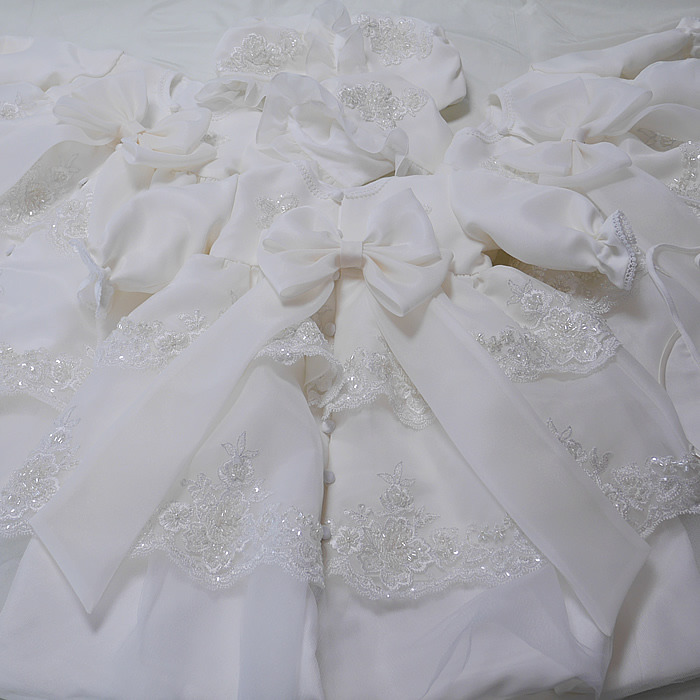 ドレス生地が足りるように切り替えや丈を調節しました。