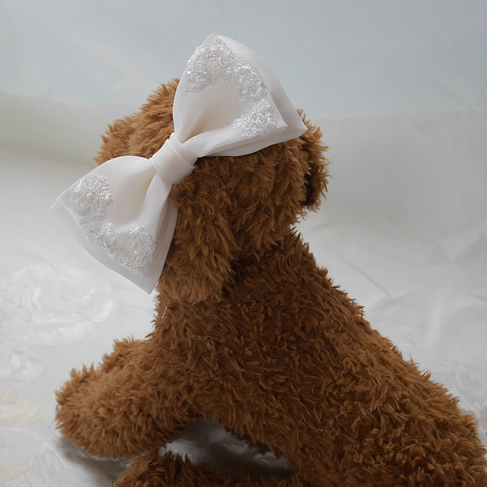 合わせてわんちゃんにはヘッドドレスをお作りしました。