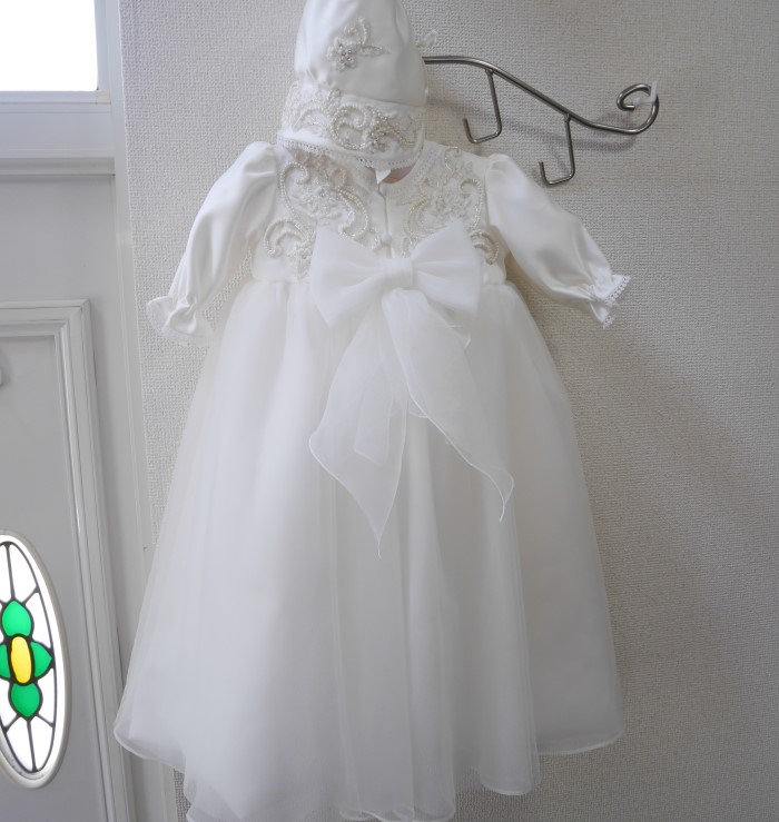 ウェディングドレスからベビーセレモニードレスへリメイクしました。