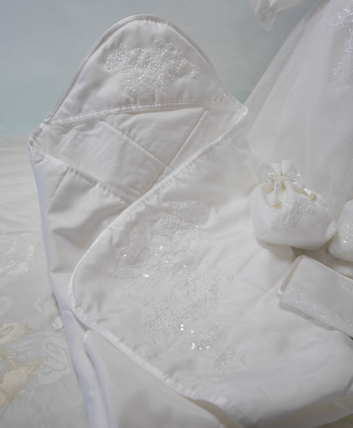 ウェディングドレスからベビードレスとおくるみ、