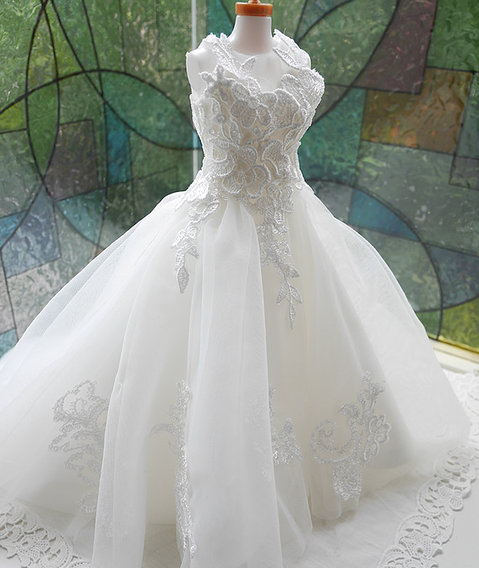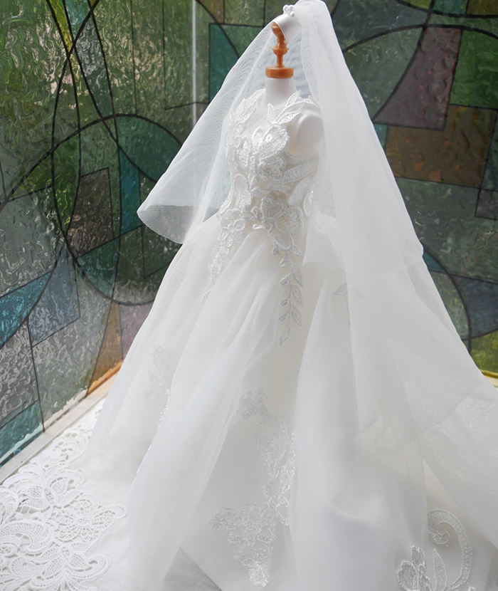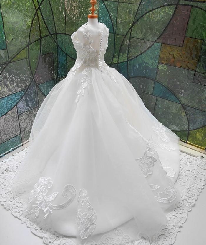 シンプルなベールから1/6サイズのミニチュアドレスをお作りしました。
