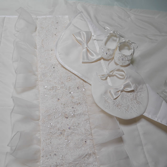 おくるみもレースとドレスのオーガンジーから