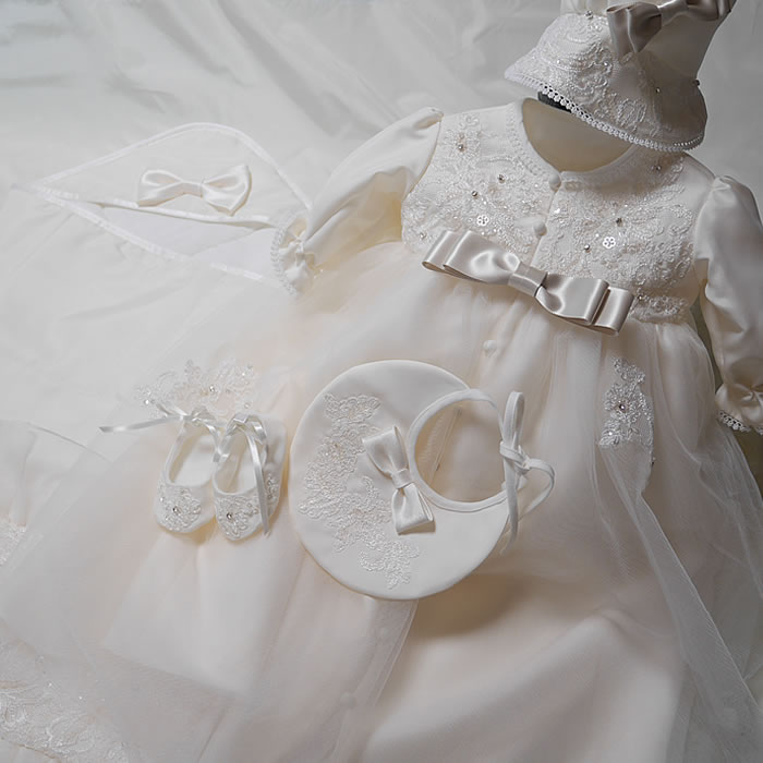 ウェディングドレスからベビードレスとおくるみ等の