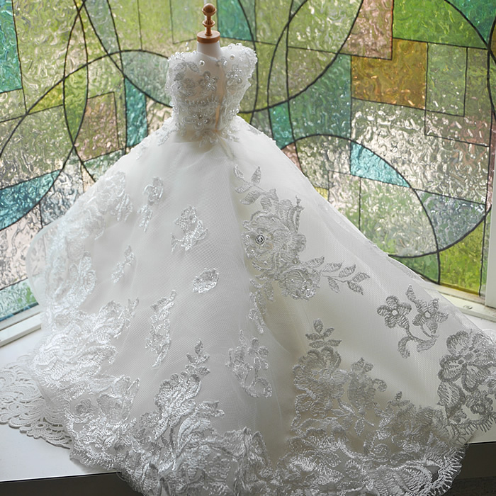 ベビードレスも元ドレスのデザインをいかして、見頃にレースをあしらい
