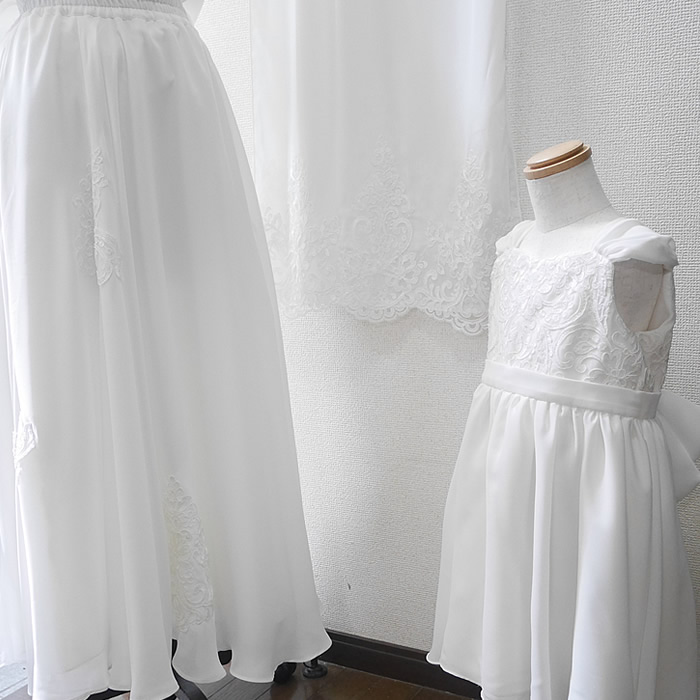 スカートとお子様ドレス、ショール、カーテンにリメイクしました。