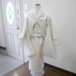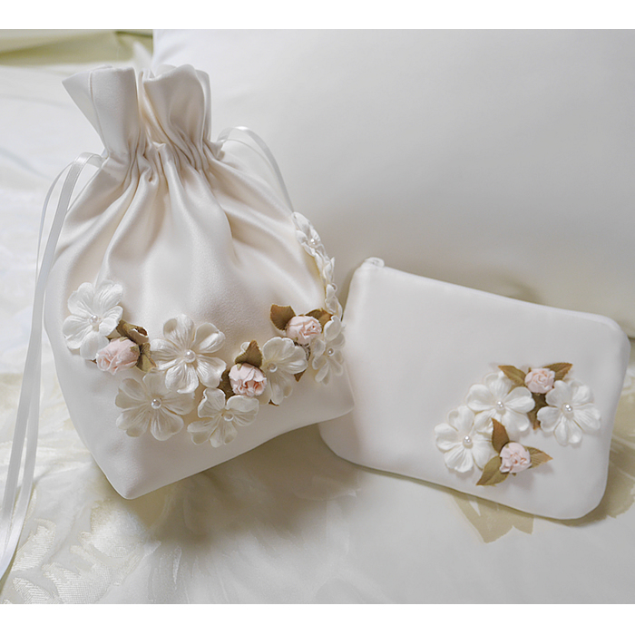 ウェディングドレスのサテン地と装飾のフラワーパーツをアレンジして
