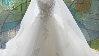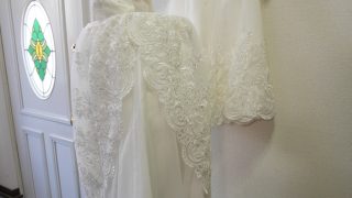 身頃等は当店が手配したサテンの上にベールのレースあしらいました。